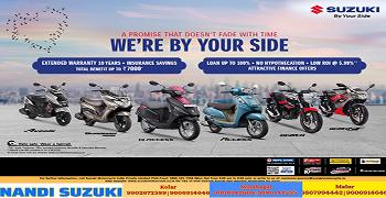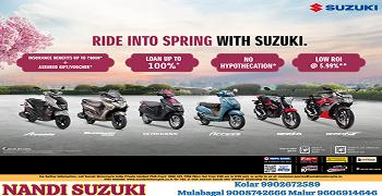 Established in 2023, Nandi Suzuki, Petechamanahalli is one of the most well-known and trusted Suzuki Bike Showroom in Kolar. Nandi Suzuki is an authorised Suzuki Motorcycle Dealer with a state-of-the-art showroom where you can check out the new Avenis,take it out for a test ride, and book your dream ride. On our website, you can explore the entire range of two-wheelers by Suzuki Motorcycles. You can also find out the ex-showroom price of different variants, calculate EMI, get a callback, and even book a suitable time slot for a test ride. Check out your favourite Suzuki motorcycles and scooters conveniently, with the easy-to-use filters to simplify your search. Nandi Suzuki offers the entire range of Suzuki Motorcycles, Big Bikes, and Scooters in the Avenis from Nandi Suzuki,check out its features, take it for a ride, get a quote, and book your favourite bike from the entire range of Suzuki motorcycles and scooters in. At Nandi Suzuki, you can also avail two-wheeler finance to buy your favourite ride.